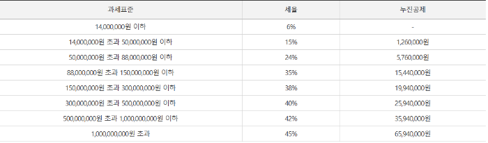 - 세율은 과세표준 구간별로 누진