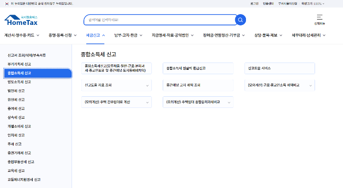 - 홈택스 접속