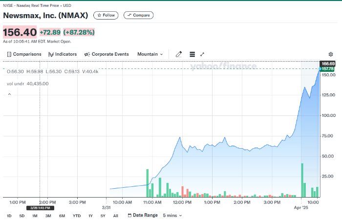 2025년 3월 31일, 미국 뉴욕증권거래소(NYSE)에 보수 성향의 뉴스 채널 **뉴스맥스(Newsmax)**가 상장되었습니다.